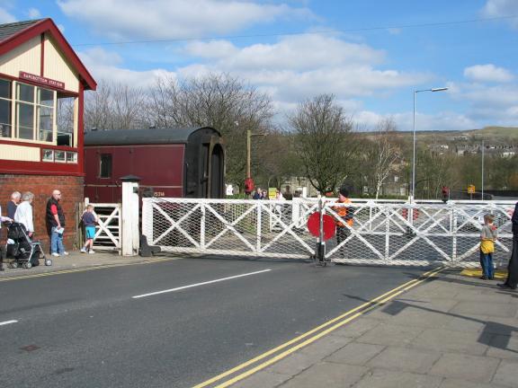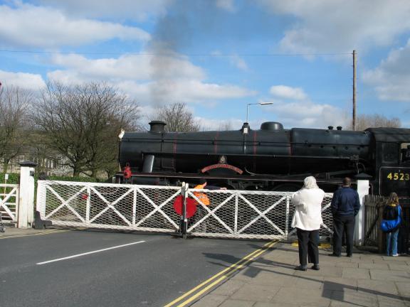 The train goes through a level crossing |